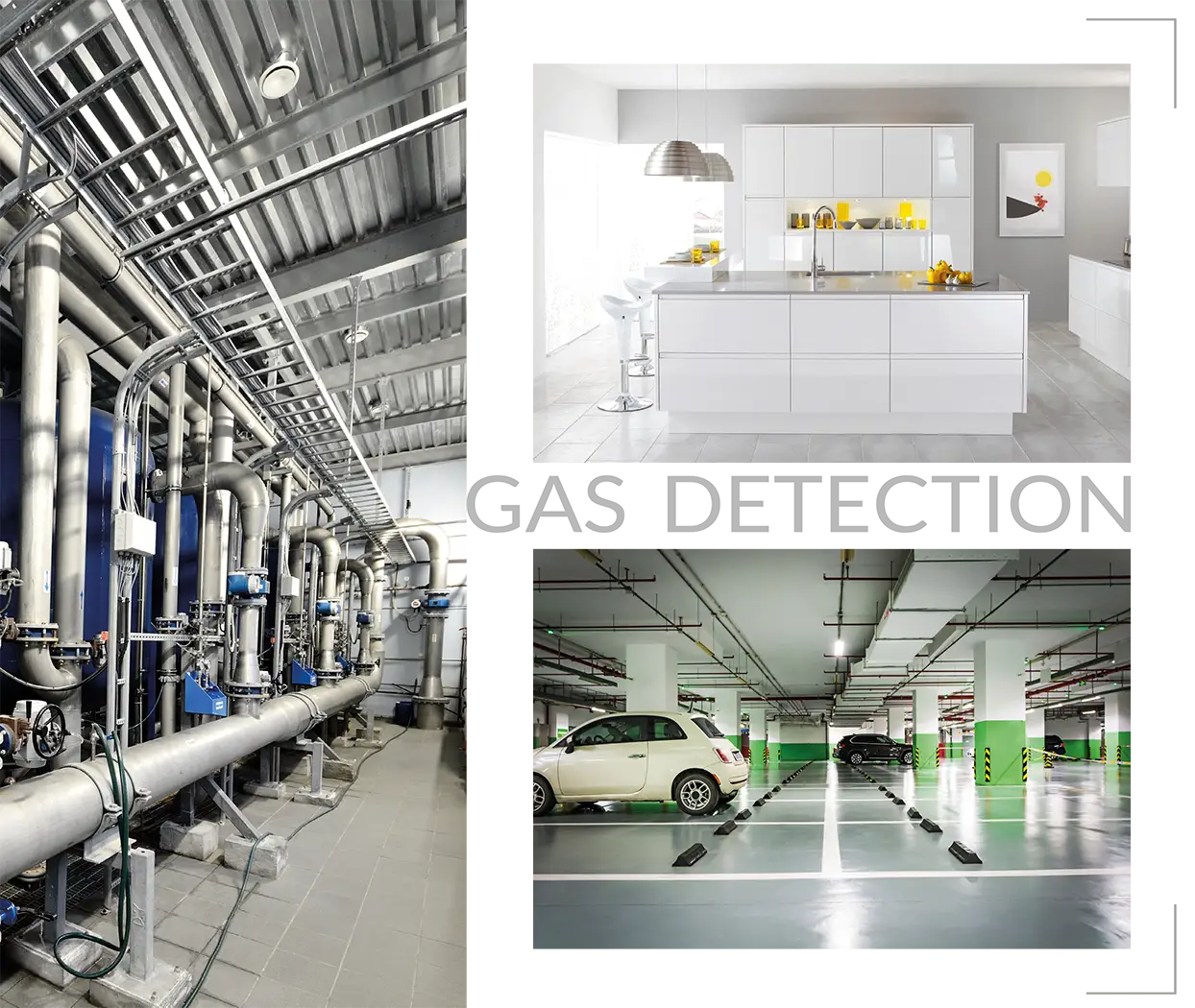 Sistemi di rivelazione gas per ambienti domestici, ristoranti e cucine professionali, centri commerciali e settori industriali alto rischio esplosione / incendio.